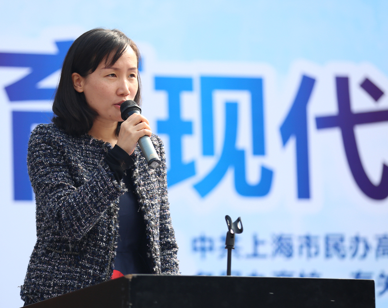 震旦職業(yè)學(xué)院董事長張沈女士發(fā)表了熱情洋溢的致辭,她首先對各位來賓出席本次大會(huì)表達(dá)最真摯的歡迎和感謝,對心理健康教育基地落成表示祝賀,對上海教委、上海民辦高校黨委把基地建設(shè)落實(shí)到震旦學(xué)院表示感謝,并對長三角心理健康教育一體化協(xié)作表達(dá)了良好的祝愿。