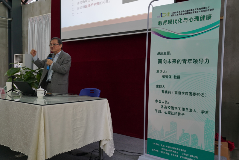 下午,大會(huì)分別召開專家研討會(huì)和專家講座,在專家研討會(huì)上,上海民辦高校心理健康教育基地負(fù)責(zé)人、震旦職業(yè)學(xué)院黨委書記黃晞建與清華大學(xué)學(xué)生心理發(fā)展指導(dǎo)中心代表王旭主任助理、交通大學(xué)心理中心主任楊文圣教授簽署合作協(xié)議,戴兆駿教授、馬建青教授、陳增堂教授和孔燕教授共同簽署了江浙滬皖三省一市“長三角高校心理健康教育發(fā)展一體化協(xié)作”協(xié)議。與會(huì)專家對基地建設(shè)和長三角高校心理健康教育的發(fā)展,大學(xué)生心理健康現(xiàn)狀做了分析和展望。上海市領(lǐng)導(dǎo)科學(xué)學(xué)會(huì)副會(huì)長、上海中醫(yī)藥大學(xué)原黨委書記張智強(qiáng)教授為各民辦高校團(tuán)學(xué)工作負(fù)責(zé)人、學(xué)生干部、心理社團(tuán)骨干作了《面向未來的青年領(lǐng)導(dǎo)力》專題報(bào)告,并與學(xué)生進(jìn)行了面對面的討論。