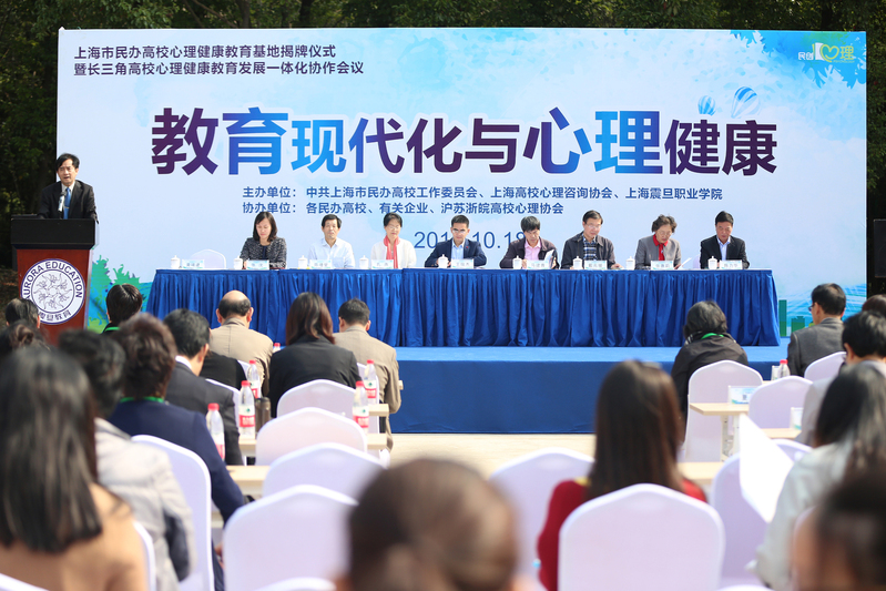 2018年10月18日,以“教育現(xiàn)代化與心理健康”為主題的上海民辦高校心理健康教育基地揭牌儀式暨長三角高校心理健康教育發(fā)展一體化協(xié)作會(huì)議在上海震旦職業(yè)學(xué)院美蘭湖校區(qū)隆重舉行。