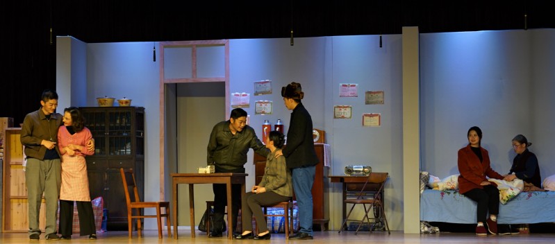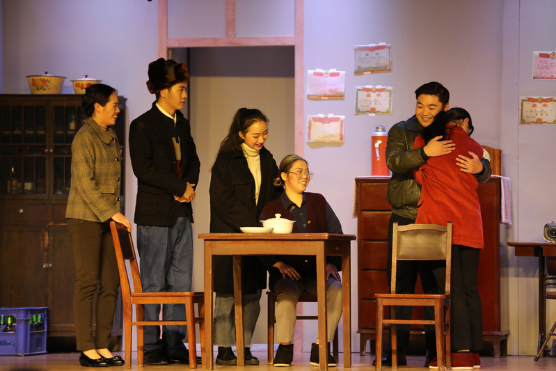 表演專業(yè)副主任宋藝?yán)蠋煋?dān)任該劇導(dǎo)演,通過仔細(xì)研究劇本和指導(dǎo)學(xué)生教學(xué)實(shí)踐,她對(duì)劇本也有了新的認(rèn)識(shí),在舞臺(tái)上對(duì)故事進(jìn)行了新的詮釋,形成了具有特色的震旦版《大哥》。16級(jí)的學(xué)生均出生在上世紀(jì)90年代后期,要他們?nèi)パ堇[出生之前的故事,理解當(dāng)時(shí)人的行為與思想,并不是件簡單的事。宋藝?yán)蠋熢谂啪氝^程中,通過各種方法把學(xué)生帶入當(dāng)時(shí)的情境,一一為他們解釋劇中人的行動(dòng)線索、心理邏輯、時(shí)代背景,慢慢讓學(xué)生們“入了戲”、“動(dòng)了情”。