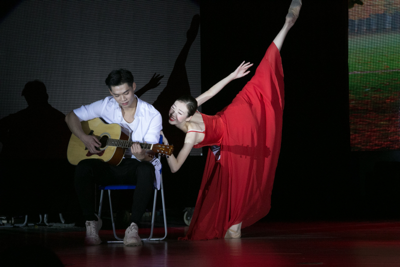 本次比賽我校派出的8名選手均來(lái)自東方電影學(xué)院17、18級(jí)戲劇影視表演專業(yè)。我校參賽隊(duì)的兩大“亮點(diǎn)”也成為整個(gè)大賽的兩大“看點(diǎn)”:唯一一支非空乘專業(yè)隊(duì)伍和唯一一支全由男生組成的隊(duì)伍。這支“男子天團(tuán)”一出場(chǎng)就奪人眼球,獲得了熱烈的掌聲。面對(duì)其它參賽隊(duì)伍的專業(yè)表現(xiàn),我院的8名選手毫不怯場(chǎng)、自信滿滿,在風(fēng)采展示、知識(shí)問答、情景劇表演、才藝展示環(huán)節(jié)中,都令人印象深刻,充分展露了良好的心理素質(zhì)與個(gè)人魅力。