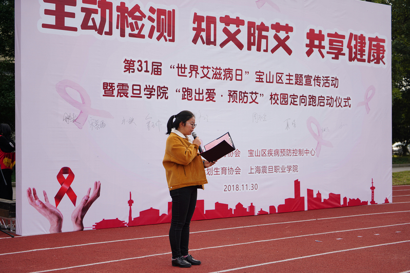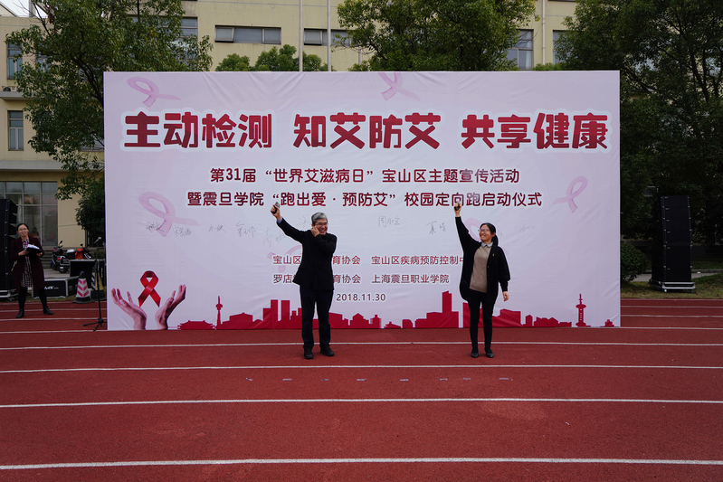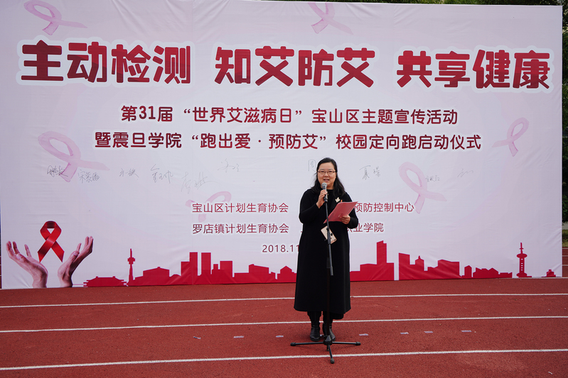 2018年12月1日是第31個“世界艾滋病日”,為進一步推動艾滋病防治工作,全面落實國家和上海市遏制與防治艾滋病“十三五”行動計劃,營造全民參與艾滋病防治工作的良好氛圍,深入開展艾滋病預(yù)防知識和反歧視理念宣傳工作,第31屆世界艾滋病日寶山區(qū)主題宣傳活動暨我?!芭艹鰫邸ゎA(yù)防艾”校園定向跑啟動儀式于11月30日在主校區(qū)操場正式舉行。出席本次活動的領(lǐng)導(dǎo)有:市計劃生育協(xié)會周永立處長,寶山區(qū)衛(wèi)生計生委副主任、寶山區(qū)計劃生育協(xié)會會長蘇玲女士,羅店鎮(zhèn)社會事業(yè)科主任唐秋紅女士,市計劃生育協(xié)會李琳老師,寶山區(qū)計劃生育協(xié)會金玉鳳老師、寶山區(qū)疾病預(yù)防控制中心劉效峰老師、校黨委副書記夏臻老師,來自滿天星青春健康同伴社的指導(dǎo)老師、志愿者們和校園定向跑活動的12支隊伍共200余人參與了此次主題活動。