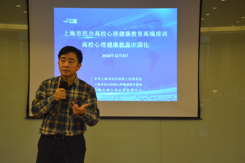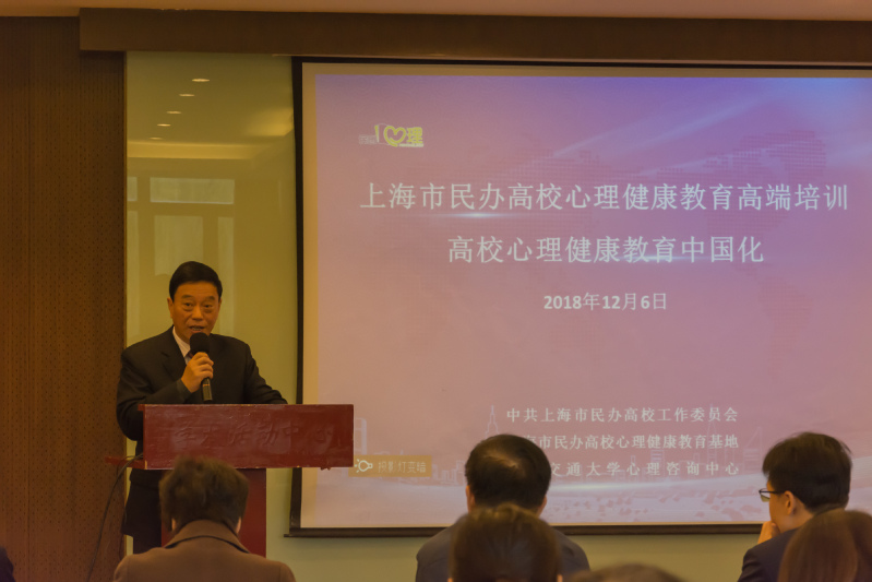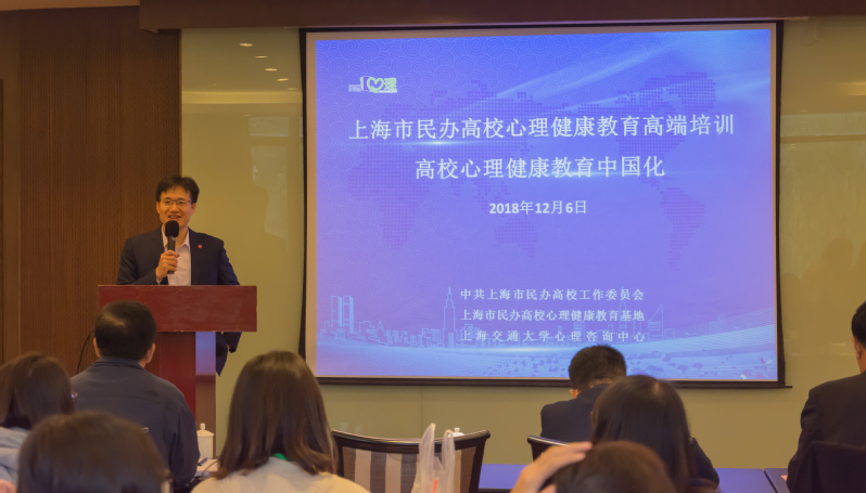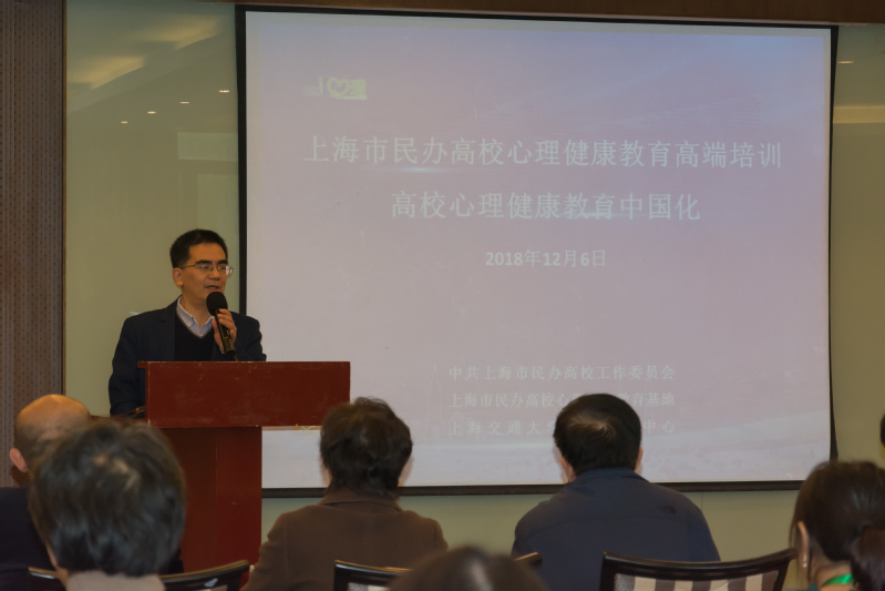 12月6日上午9:30,由上海市民辦高校黨工委、上海市民辦高校心理健康教育基地、上海交通大學(xué)心理咨詢中心聯(lián)合主辦的“心理健康教育中國(guó)化”研修班在上海交通大學(xué)閔行校區(qū)學(xué)術(shù)活動(dòng)中心順利開(kāi)班。上海市民辦高校黨工委副書記王瑞杰,上海交通大學(xué)黨委常委、副校長(zhǎng)、學(xué)指委秘書長(zhǎng)王偉明,上海交通大學(xué)學(xué)生處副處長(zhǎng)、武裝部副部長(zhǎng)康健,上海交通大學(xué)心理咨詢中心主任楊文圣,上海市民辦高校心理健康教育基地負(fù)責(zé)人、上海震旦職業(yè)學(xué)院黨委書記黃晞建,校長(zhǎng)陳力華,副書記夏臻,學(xué)工部部長(zhǎng)、心理健康教育中心主任毛燕靜等領(lǐng)導(dǎo)專家出席了本次開(kāi)班儀式。儀式由康健主持,來(lái)自上海13所民辦高校的黨政中層骨干、專兼職心理骨干教師等共38人參加了此次研修班。