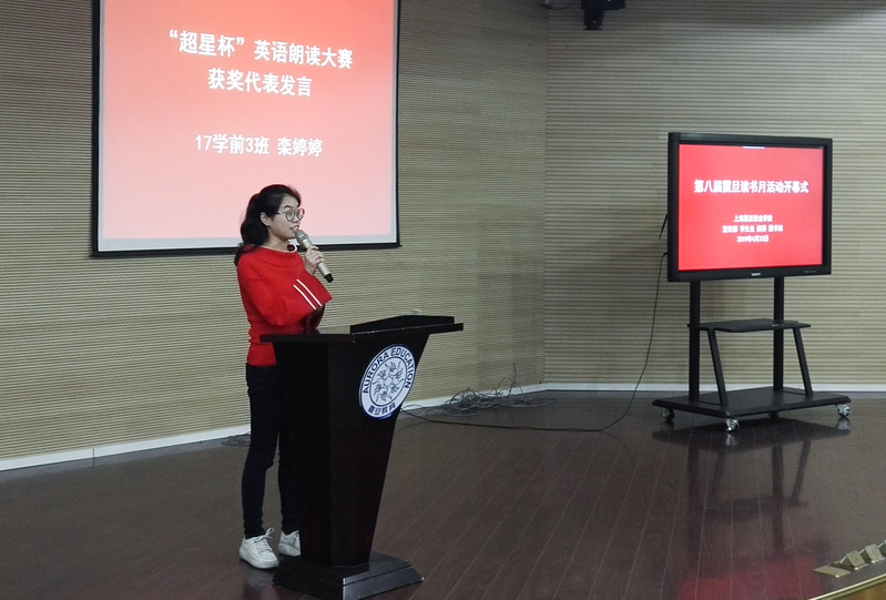 獲得英語朗讀大賽一等獎的17學(xué)前3班欒婷婷同學(xué)作為學(xué)生代表發(fā)言,她分享了英語學(xué)習(xí)的有關(guān)經(jīng)驗,鼓勵同學(xué)們克服惰性,利用收聽英語廣播、練習(xí)配音、加入朗讀小組等方法勤加磨煉,逐步提高。
