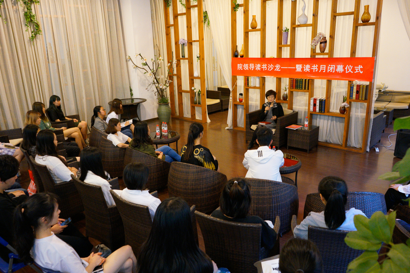 5月22日晚,院領(lǐng)導(dǎo)讀書沙龍——暨第八屆震旦讀書月閉幕儀式在體藝樓休閑茶座舉行,黨委夏臻副書記受邀擔(dān)任主講,學(xué)生處毛燕靜處長、團(tuán)委曹曉莉書記、圖書館張健館長、宣傳部金瑤副部長及四十余位學(xué)生代表出席了活動。