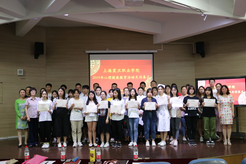 最后,上海震旦職業(yè)學院黨委副書記夏臻老師為2019年心理健康教育活動月閉幕式致閉幕詞。全體演職人員,包括工作人員,校領(lǐng)導合影留念。至此2019年心理健康教育活動月圓滿結(jié)束。