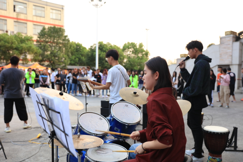 熱鬧的文化廣場(chǎng)上,社團(tuán)的招新表演如火如荼,激起同學(xué)們掌聲呼聲一片。舞蹈社向大家展現(xiàn)了《玩火》、《Black dress》、《Latata》這些耳熟能詳?shù)母枨璧福焕怖膊偕鐜?lái)活力四射的《Dream》展現(xiàn)了她們的青春夢(mèng)想以及無(wú)限活力;吉他社用架子鼓的帥氣開(kāi)場(chǎng)直接將現(xiàn)場(chǎng)氣氛感染到最高點(diǎn),他們用樂(lè)隊(duì)彈唱的形式演唱了《公路之歌》、《一路向北》、《小半》等等的歌曲,向大家展現(xiàn)了他們的音樂(lè)之情、搖滾之心;武道社是我校最大的社團(tuán),也是肩負(fù)著學(xué)校光榮的一個(gè)社團(tuán),武道社的成員們個(gè)個(gè)身著專業(yè)跆拳道服,意氣風(fēng)發(fā)、精神抖擻地向在場(chǎng)的萌新們展現(xiàn)了他們勃勃身姿。除此之外還有攝影社、瑜伽社、話劇社、足球社等社團(tuán)都準(zhǔn)備了精彩的表演為祖國(guó)70華誕獻(xiàn)上青春的祝福,吸引了眾多同學(xué)駐足觀看。每個(gè)社團(tuán)前熙熙攘攘,有學(xué)長(zhǎng)學(xué)姐們的耐心講解,也有報(bào)完名的同學(xué)興奮的討論亦或是對(duì)未來(lái)社團(tuán)活動(dòng)的設(shè)想。