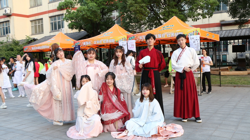 金秋送爽,丹桂飄香,國(guó)慶來(lái)臨之際,我校于2019年9月26日下午四點(diǎn)在美食街舉行“繽紛社團(tuán)告白偉大祖國(guó)”主題活動(dòng)暨2019-2020學(xué)年社團(tuán)招新。參加本次招新的有足球社、攝影社、讀書(shū)會(huì)、心理社等25個(gè)社團(tuán)。伴隨著《我和我的祖國(guó)》音樂(lè)的響起,一場(chǎng)歡宴向全校同學(xué)徐徐展開(kāi)。在此次社團(tuán)招新活動(dòng)中,各個(gè)社團(tuán)為了“招兵買(mǎi)馬”紛紛大顯神通。