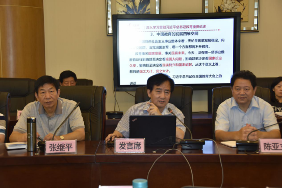 會(huì)上,黃晞建書(shū)記深入宣講了習(xí)近平總書(shū)記教育重要論述,并從戰(zhàn)略全局角度闡釋了“教育始終聯(lián)系中華民族偉大復(fù)興”的重要意義,強(qiáng)調(diào)當(dāng)今世界教育的基礎(chǔ)性、先導(dǎo)性、全局性地位和作用,從教育內(nèi)涵角度科學(xué)論述了教育改革發(fā)展的新理念新思想新觀點(diǎn),教師扎實(shí)學(xué)識(shí)、立德樹(shù)人的使命擔(dān)當(dāng),學(xué)生扎根人民、奉獻(xiàn)國(guó)家的理想信念,并對(duì)黨政負(fù)責(zé)干部提出了熟悉教育、關(guān)心教育、研究教育的要求。