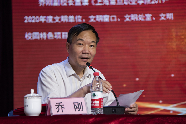 喬剛副校長宣讀《上海震旦職業(yè)學院2019-2020年度文明單位、文明窗口、文明處室、文明校園特色項目的決定》
