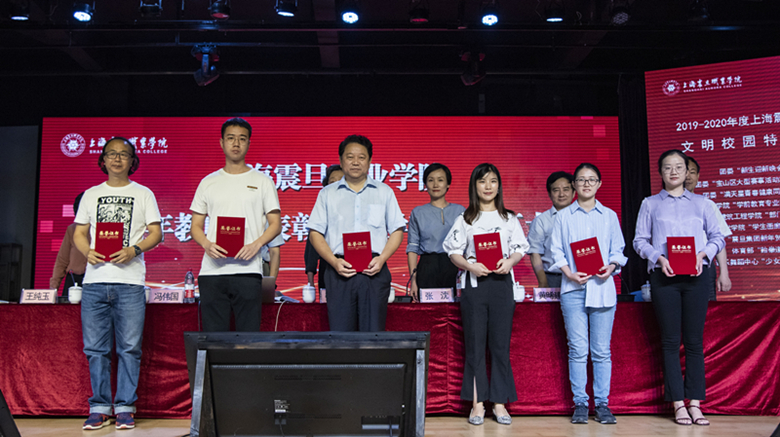 會上,張沈董事長宣讀了《上海震旦職業(yè)學院優(yōu)秀園丁及師德標兵表彰決定》,葉子、喻璐等20位教師榮獲“優(yōu)秀園丁”榮譽稱號;魏友利、張石偉等7位教師榮獲“師德標兵”榮譽稱號。同時,喬剛副校長宣讀了《上海震旦職業(yè)學院2019-2020年度文明單位、文明窗口、文明處室、文明校園特色項目的決定》,對2019-2020年度學校表現(xiàn)突出的各文明單位進行了表彰。