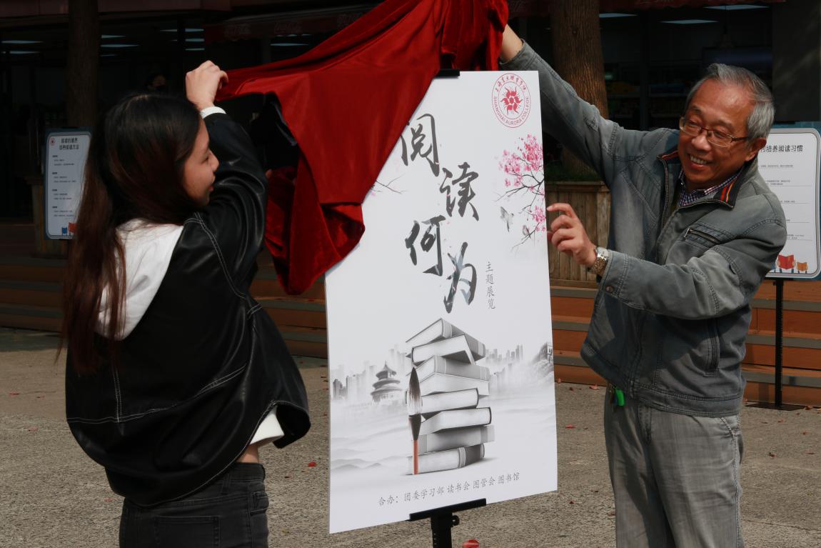 圖書館張健館長和團委張雪琴老師共同為這次活動進行揭幕