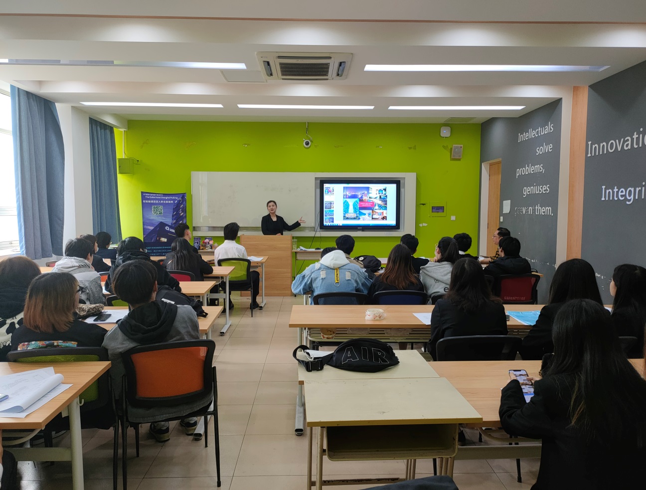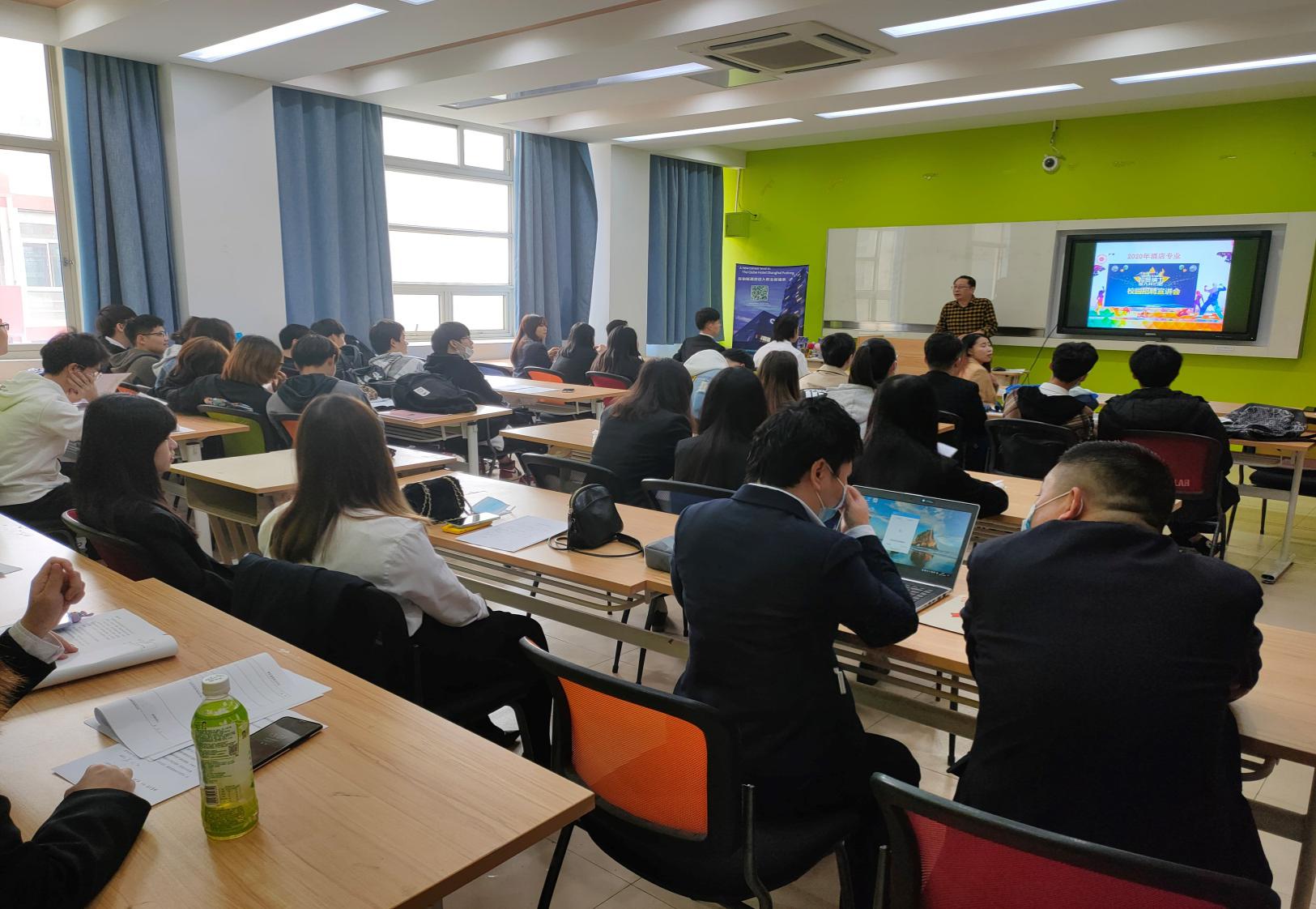 10月28號下午1:00,經(jīng)濟管理學(xué)院酒店管理專業(yè)攜手上海綠地鉑驪酒店、上海美蘭湖酒店、上海外灘茂悅大酒店以及上海靜安洲際酒店在一號樓305教室召開了18級酒店專業(yè)應(yīng)屆畢業(yè)生校園招聘宣講會。會議先由各酒店負(fù)責(zé)人進(jìn)行宣講,之后直接現(xiàn)場面試。