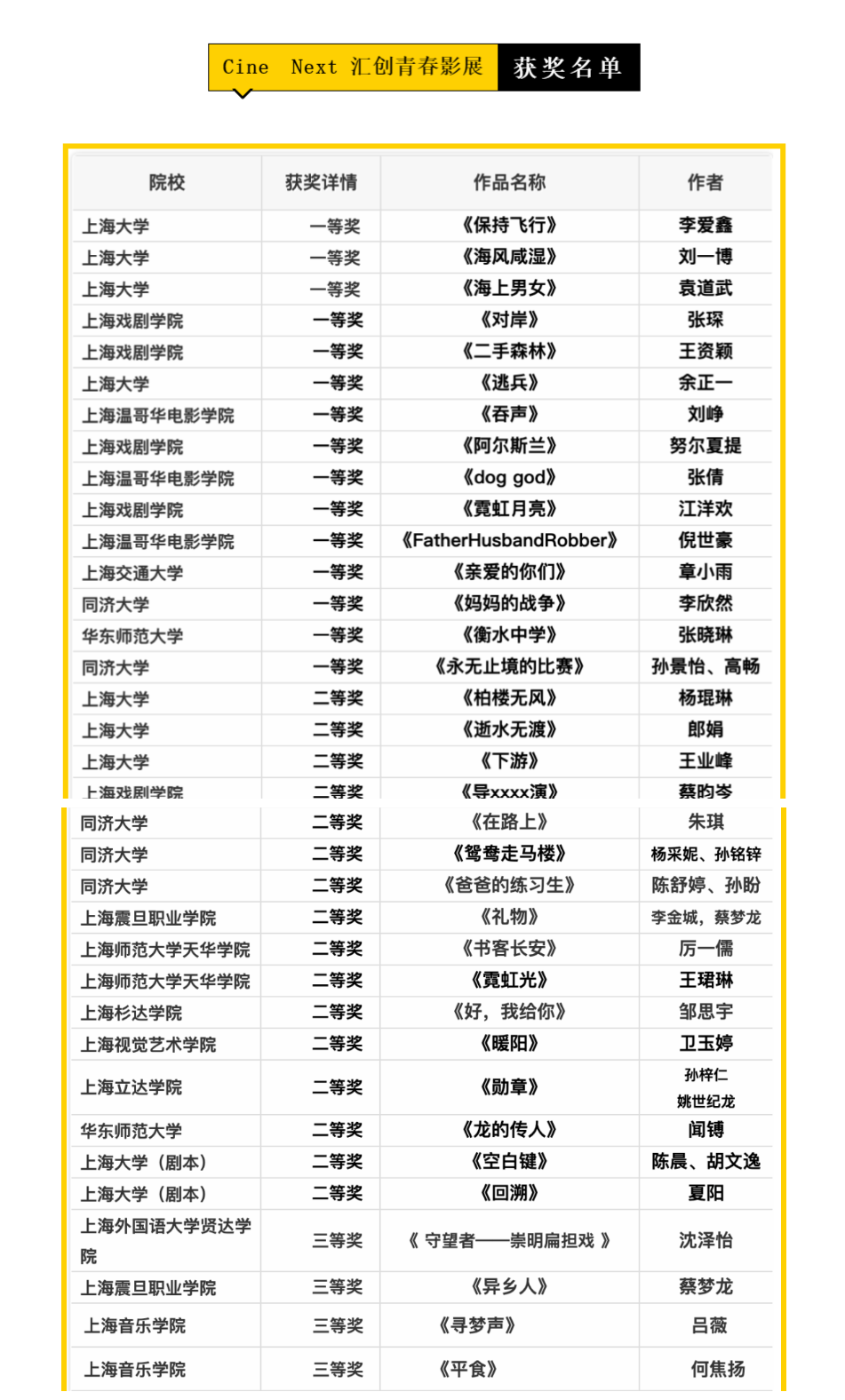 三是以訓(xùn)促教、以賽促學(xué)、訓(xùn)賽促改,助力人才培養(yǎng)。借助市級(jí)、國家級(jí)的一些比賽,把參賽訓(xùn)練與專業(yè)實(shí)訓(xùn)結(jié)合起來,促進(jìn)學(xué)生進(jìn)行“真刀真槍”實(shí)操技能訓(xùn)練,以此推動(dòng)教學(xué)改革、檢驗(yàn)教學(xué)水平、提高學(xué)生的專業(yè)興趣。由于疫情防控原因,今年很多賽事被推遲或取消,東方電影學(xué)院不肯放過任何一個(gè)展示學(xué)生專業(yè)技能的時(shí)機(jī),積極為學(xué)生搭建展示的平臺(tái),組織師生在力所能及的情況下參加比賽。在第五屆“匯創(chuàng)青春”上海市大學(xué)生文化創(chuàng)意展視頻類評(píng)獎(jiǎng)中,任艾麗老師指導(dǎo)的微電影《禮物》獲得視頻類二等獎(jiǎng),葉子老師指導(dǎo)的微電影《異鄉(xiāng)人》獲得視頻類三等獎(jiǎng)。2018級(jí)音像技術(shù)專業(yè)學(xué)生朱晉蔚同學(xué)入選BSC創(chuàng)意短篇扶持計(jì)劃。在第六屆全國大學(xué)生藝術(shù)展演中,學(xué)院分別組織報(bào)送了任艾麗老師、葉子老師指導(dǎo)的兩部微電影作品和祝華東老師的一篇論文,正等待評(píng)選結(jié)果。