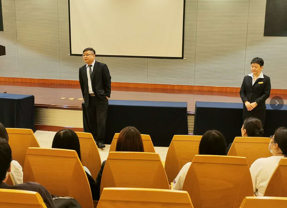 2020年9月15日,2018級酒店管理專業(yè)的學生在美蘭湖國際會議中心開始進行為期8周的專業(yè)技能實訓。同學們將進入酒店客房部、餐飲部、會務服務部等部門,從事專業(yè)技能實訓。實訓第一天,上海美蘭湖酒店經營管理有限公司人事行政部樊經理、餐飲部徐總監(jiān)給同學們作了酒店的介紹和崗前培訓,各部門經理分別介紹了各自部門的基本情況。同學們表示,對未來8周的企業(yè)實訓充滿信心。