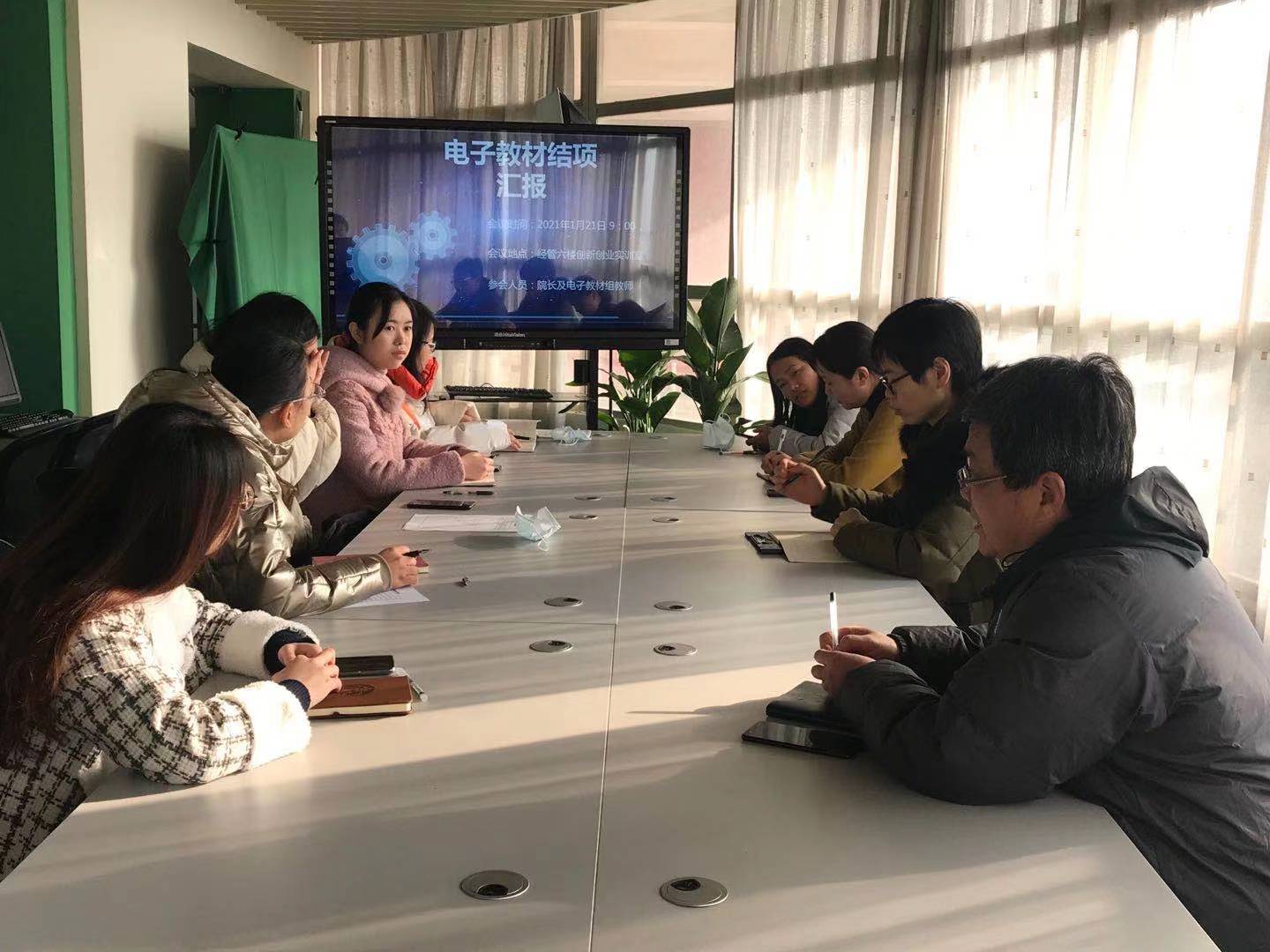 2021年1月21日上午9點,經濟管理學院“第一批電子教材”建設成果匯報及展示會議在經管學院實訓室召開。學院院長胡守忠、院長助理皮駿、骨干教師代表以及6位電子教材課程負責人參加了會議。