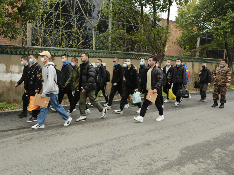 3月12日早晨我校17名預定新兵,在寶山區(qū)民兵訓練基地外集合完畢。我校武裝部徐磊老師作簡單動員講話后,17名新兵向家長們敬禮道別,有序進入訓練基地。