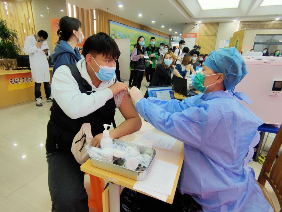在接種前,他們積極開展現(xiàn)場秩序維護(hù)、線路指引等志愿服務(wù),助力學(xué)校疫苗接種工作有序進(jìn)行。同時(shí),積極向同學(xué)們宣講接種注意事項(xiàng),以緩解大家的緊張情緒。