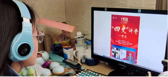 2.營造學(xué)習(xí)氛圍。學(xué)校積極引領(lǐng)學(xué)生在以黨史教育為重點的“四史”教育中,學(xué)習(xí)了解掌握黨史知識,思考領(lǐng)悟把握黨的一百年歷史中貫穿的大邏輯、大道理、大趨勢。學(xué)生們在工間、在課余、在教室、在宿舍,或通過手機,或使用平板,或打開電腦,認真學(xué)習(xí)時不我待,深刻領(lǐng)悟聚精會神,讓我們看到了虎虎生風(fēng)的青春脈動,洋溢著勃勃向上的蓬勃朝氣。“學(xué)黨史、強信念、跟黨走”,讓青春成為黨千秋偉業(yè)中生機勃發(fā)、高歌猛進的持久風(fēng)景。