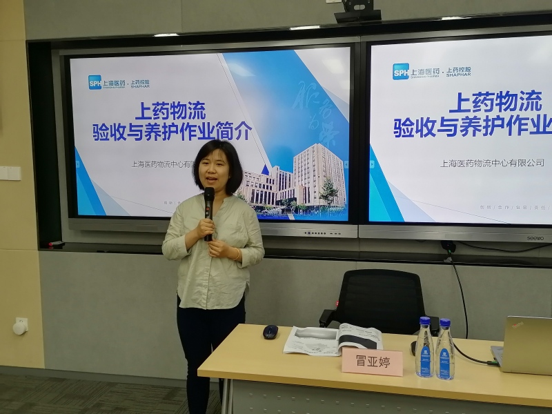 隨后,上藥控股物流公司冒亞婷老師通過同學(xué)互動(dòng)、短視頻和ppt等形式為同學(xué)們講解了上藥物流驗(yàn)收和上藥養(yǎng)護(hù)作業(yè)兩大板塊內(nèi)容。