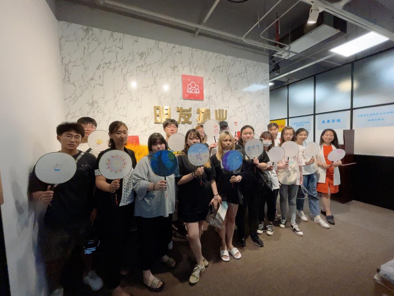 第二次實(shí)踐活動(dòng)中,上海吉愛家庭服務(wù)有限公司蘇喆老師為學(xué)生們介紹了公司情況,張鳴老師講解市場部運(yùn)營情況;上海白玉蘭心理咨詢服務(wù)中心心理咨詢師梁麗蘊(yùn)老師帶學(xué)生們體驗(yàn)了曼陀羅團(tuán)扇繪制解壓課。