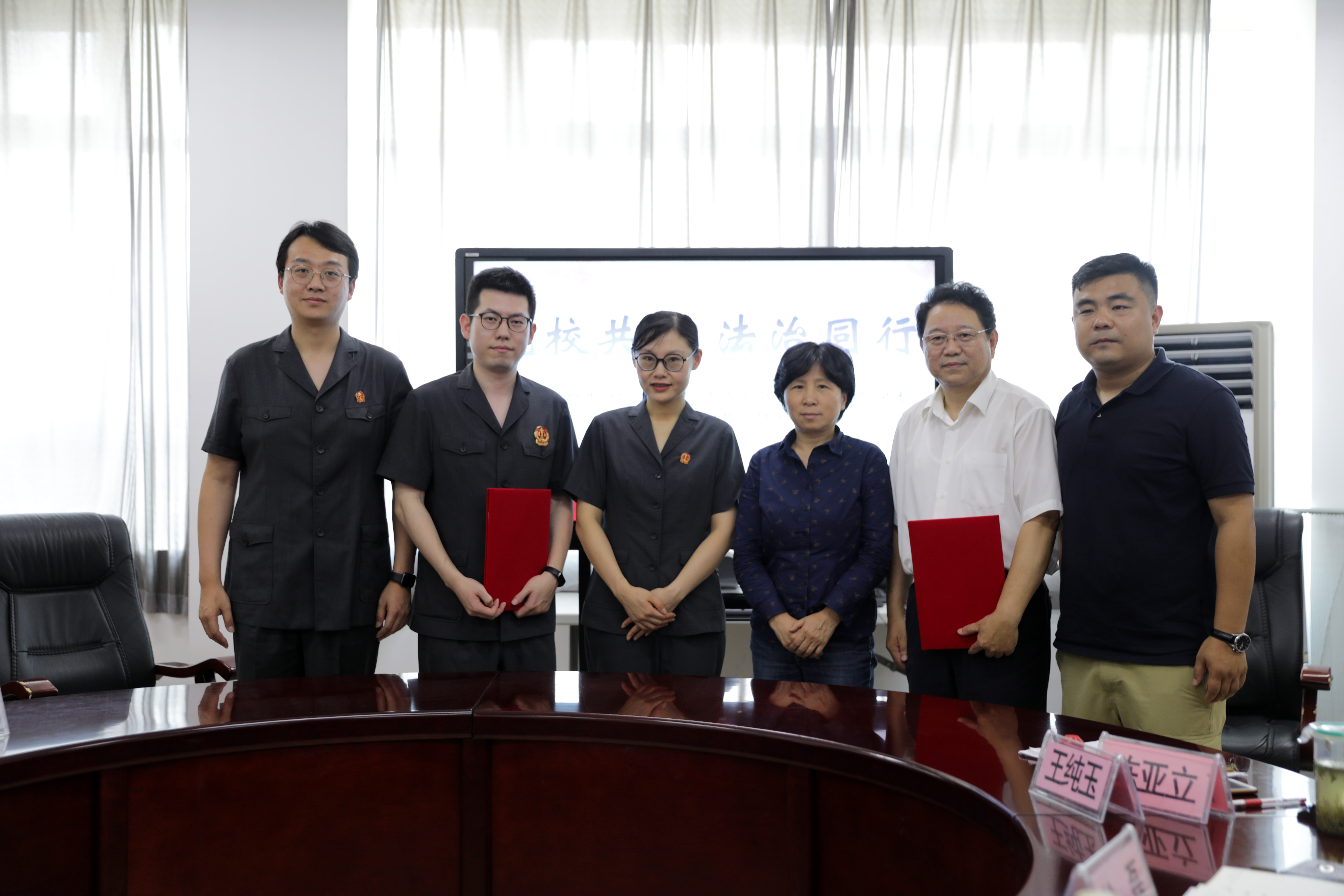陳亞立部長與法院賈路法官分別代表雙方簽訂了共建協(xié)議。協(xié)議約定,院校雙方建立大學(xué)生社會實習(xí)實踐合作交流機制,法院定期提供實習(xí)生項目供我校學(xué)生參加,主要承擔(dān)法院通知、送達、歸檔等輔助性審判工作,組織學(xué)生參觀法院、旁聽庭審、法律實習(xí)、課題調(diào)研等,并舉辦普法教育和法律咨詢等活動,雙方相互配合,共同做好共建的履職與宣傳工作。