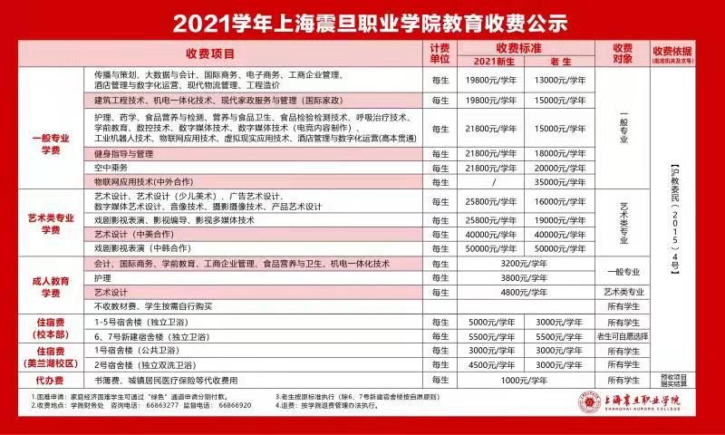 2021學(xué)年上海震旦職業(yè)學(xué)院教育收費(fèi)公示