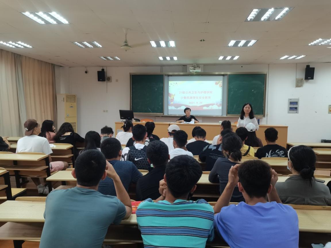 2021年9月29日,公共衛(wèi)生與護(hù)理學(xué)院邀請(qǐng)學(xué)校內(nèi)派教師巴了黑婭為學(xué)院21級(jí)少數(shù)民族學(xué)生開展了安全教育座談會(huì)。學(xué)院黨總支書記王文華、各班級(jí)輔導(dǎo)員以及少數(shù)民族同學(xué)參加了此次座談會(huì)。