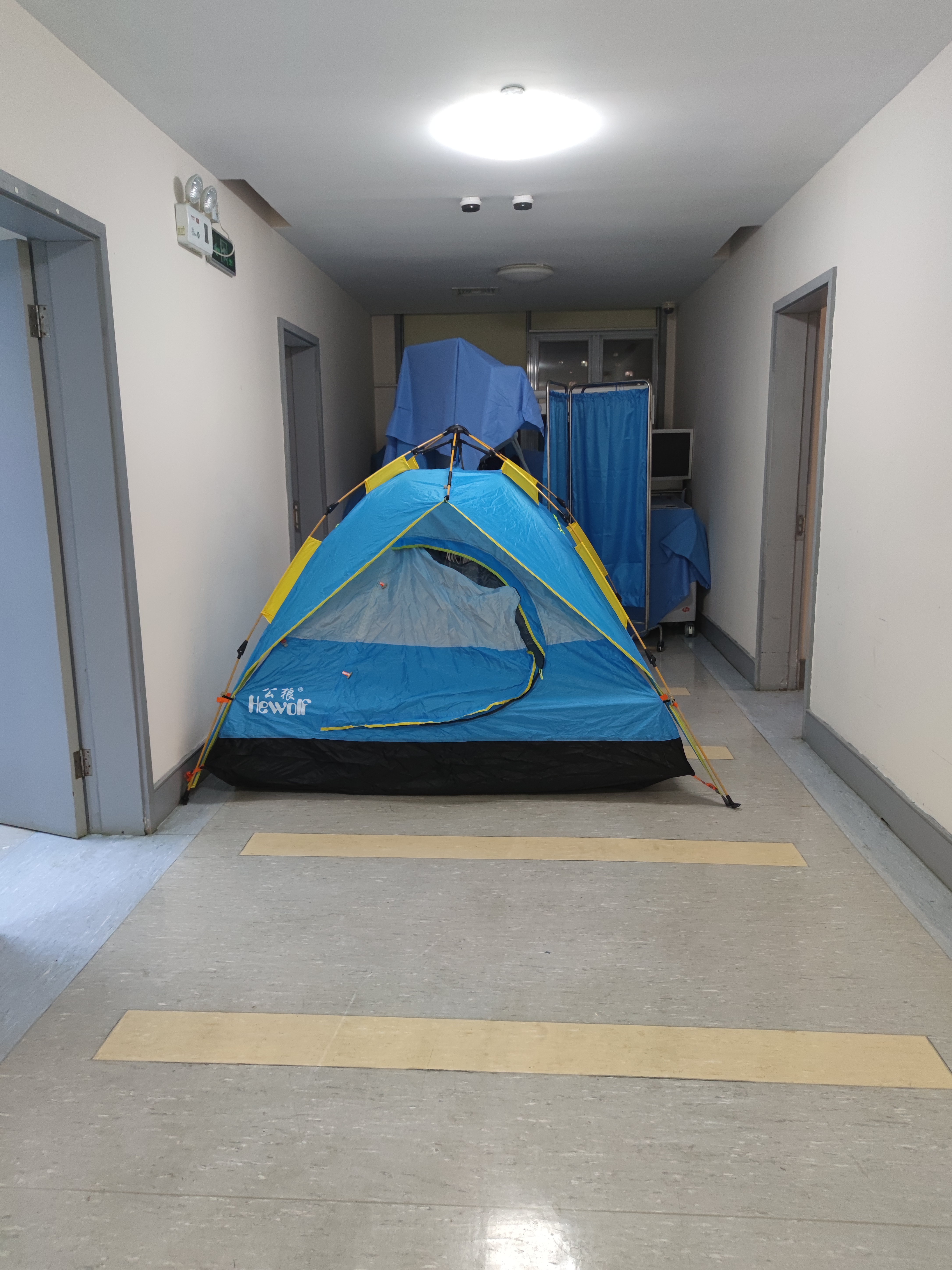 根據(jù)防疫要求,實習(xí)生們井然有序的進行核酸檢測,領(lǐng)取帳篷,睡袋等防疫物資。此外,實習(xí)護士還負責(zé)與住院病人和家屬一一溝通,告知家屬住院部的治療不會受到影響,安撫他們的緊張情緒,讓大家保持良好的心態(tài),積極配合治療。雖然條件簡陋,物資短缺,醫(yī)務(wù)人員只能睡在地板上,但是大家都能夠嚴(yán)格按照醫(yī)院的要求,沒有任何怨言,這不僅是對實習(xí)生們生理上的一次測驗,更是對大家精神上的一次考驗,讓我們明白了作為醫(yī)務(wù)工作者不忘初心,牢記使命,響應(yīng)黨的號召,義無反顧沖上疫情防控第一線的意義和責(zé)任。