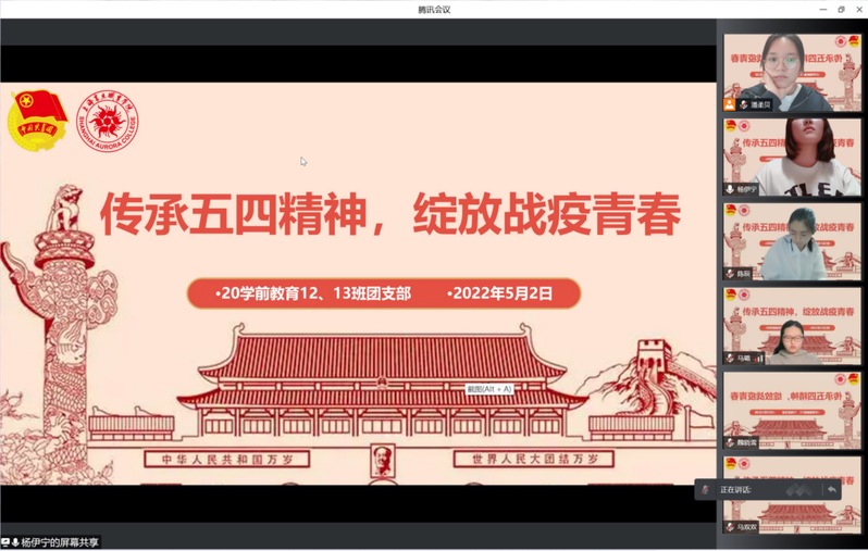 5月2日晚,張雪琴老師開展以“傳承五四精神,綻放戰(zhàn)疫青春”為主題的班會(huì)活動(dòng),以五四精神為切入點(diǎn),結(jié)合現(xiàn)實(shí)談感受。五四精神早已深入人心,這場疫情也讓人們再次重新認(rèn)識(shí)了五四精神,學(xué)生通過爭當(dāng)志愿者等方式,為抗疫工作貢獻(xiàn)出。