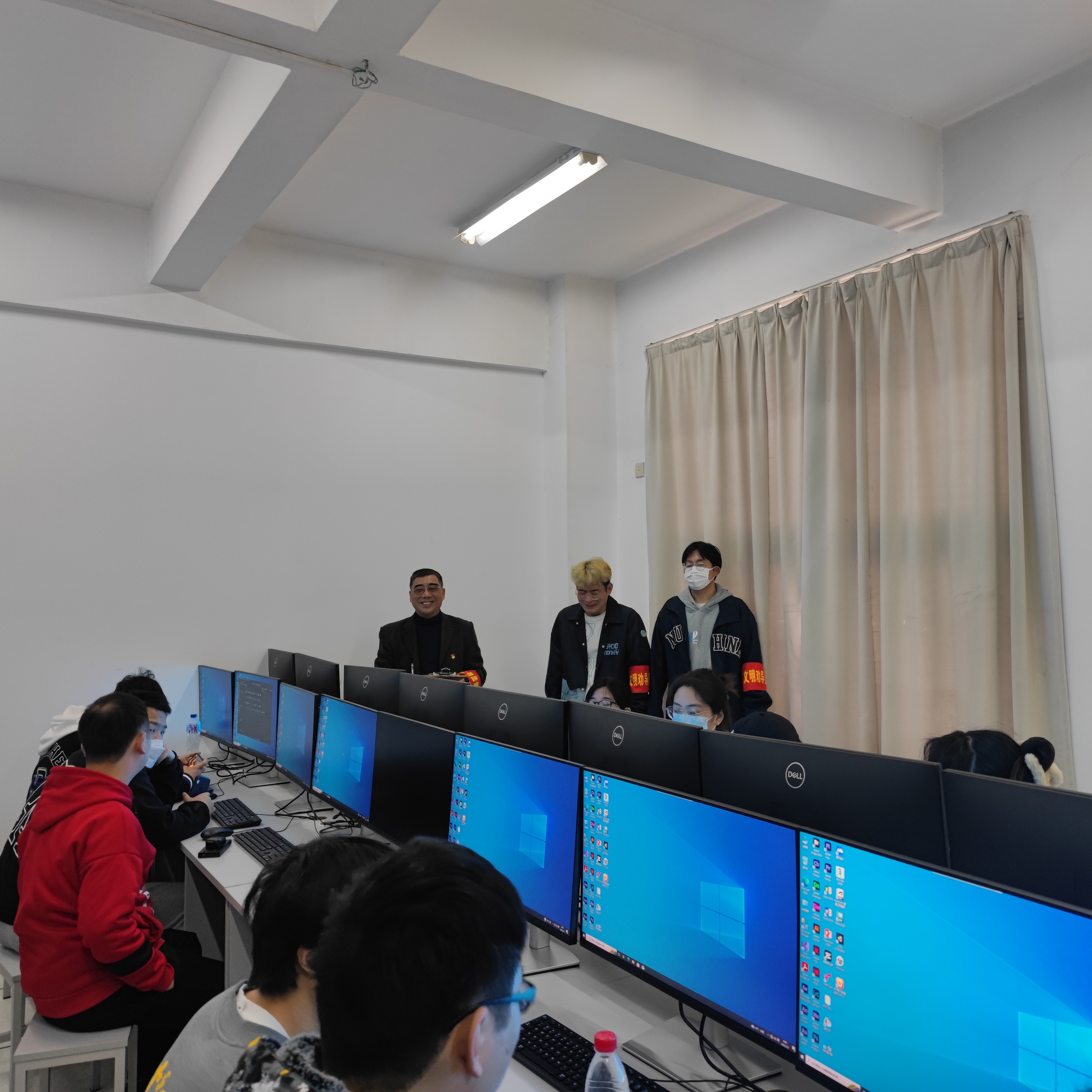 接著,余老師和值勤的班干部來到美蘭湖校區(qū)新改建的309機房,詢問21數(shù)媒1班同學使用新電腦的感受,學生們各抒己見,意味深長!