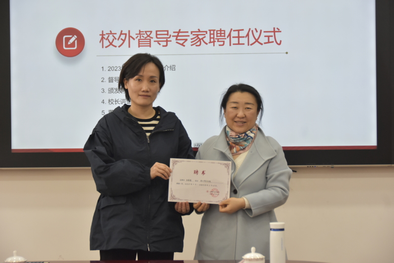 張沈董事長代表學校向本屆督導專家頒發(fā)聘書。她對新一屆督導專家的加盟表示熱烈歡迎,希望督導專家和學校有更多的交流,為學校發(fā)展決策出力。本屆共聘任16位校外教學督導專家,基本上覆蓋了學?,F(xiàn)有的學科和專業(yè)以及五年一貫制的專業(yè)。