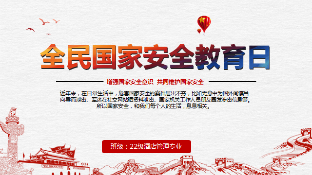 仲思輔導(dǎo)員 22酒店高本貫通班 主題《全民國家安全教育》 4月15日 線上