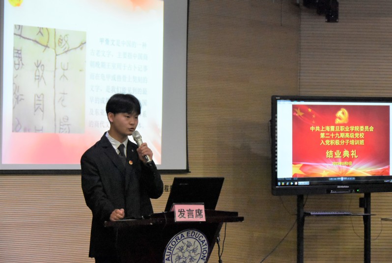 和以往結(jié)業(yè)典禮不同,本次活動要求學員們以學院為單位,自己定內(nèi)容、定形式進行總結(jié)與匯報。在臺上,學員們有的不僅播放了PPT,更制作了小視頻;有的為自己“加課”:采訪了身邊的優(yōu)秀共產(chǎn)黨員并在臺上和大家分享感悟;有的集體上臺一一闡述高黨學習給自己帶來的思想變化;有的利用自己的專業(yè)特長,為大家呈現(xiàn)了一個“小品”,生動地講述了自己的入黨動機……通過這樣的匯報,學員們更好地展示了自己的特色和學院的亮點,讓各總支書記和黨委領(lǐng)導們看到了入黨積極分子們的進步。
