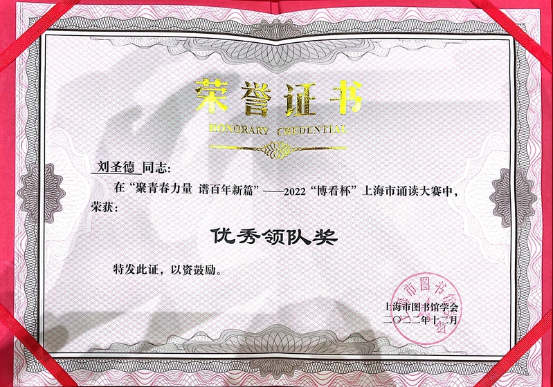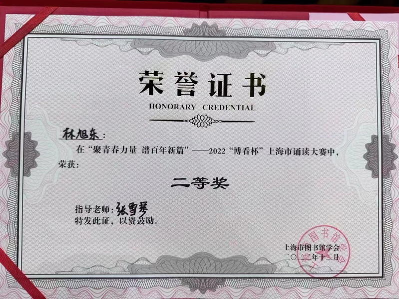 5月16日,《聚青春力量 譜百年新篇》2022“博看杯”上海市誦讀大賽決賽在上海圖書館東館樂享廳落下帷幕,我校參賽作品《豐碑》在決賽中榮獲二等獎,上海震旦職業(yè)學院獲“優(yōu)秀組織獎”,我校圖書館劉圣德老師獲“優(yōu)秀領隊獎”,校團委張雪琴老師獲“優(yōu)秀指導老師獎”。
