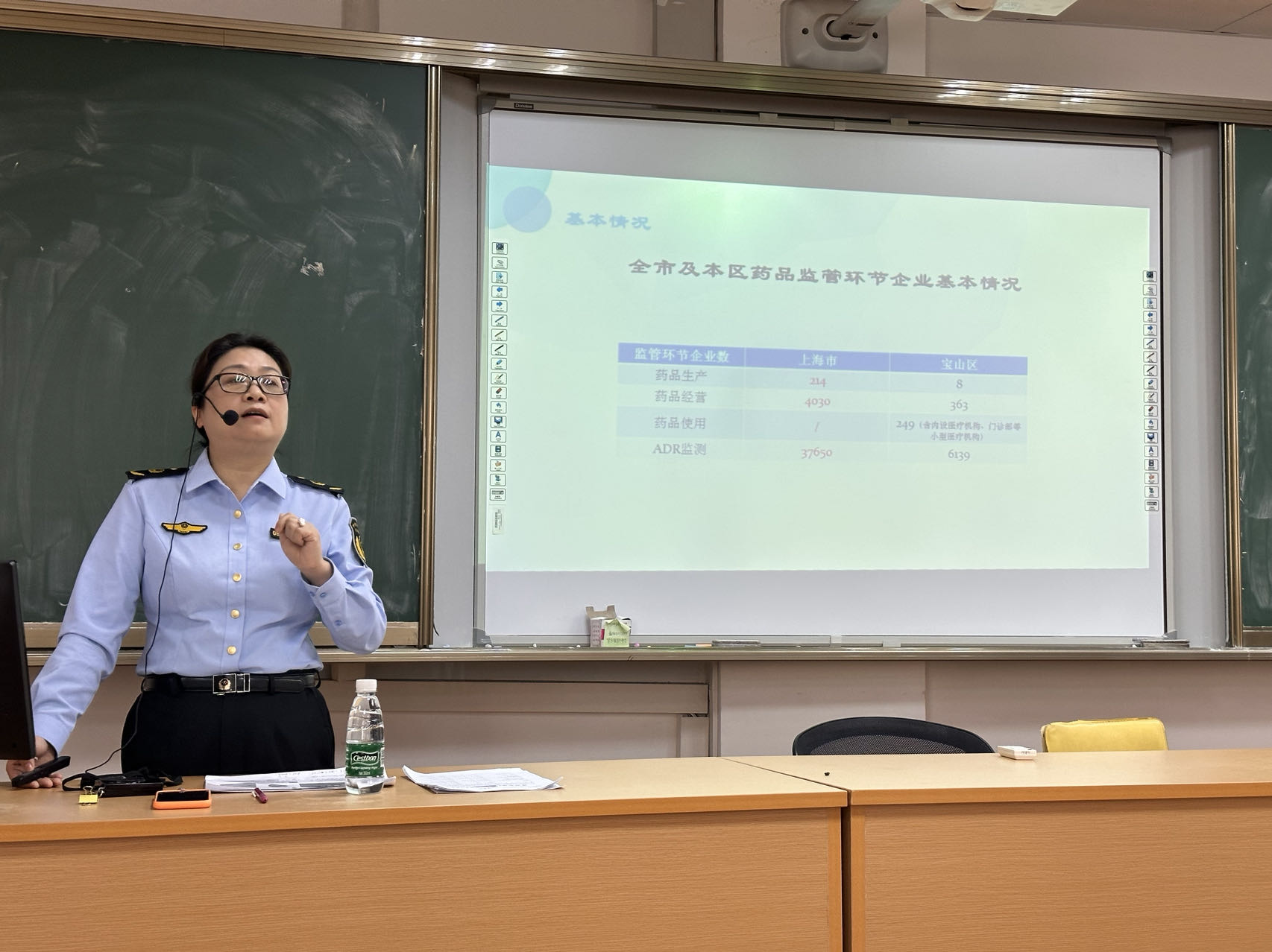 2023年5月22日下午,上海市寶山區(qū)藥品化妝品監(jiān)督管理科科長陸逸雁女士為我校2022級(jí)藥學(xué)專業(yè)的同學(xué)開展了關(guān)于藥品上市后監(jiān)管及藥品不良反應(yīng)(ADR)監(jiān)測的交流宣講活動(dòng)。