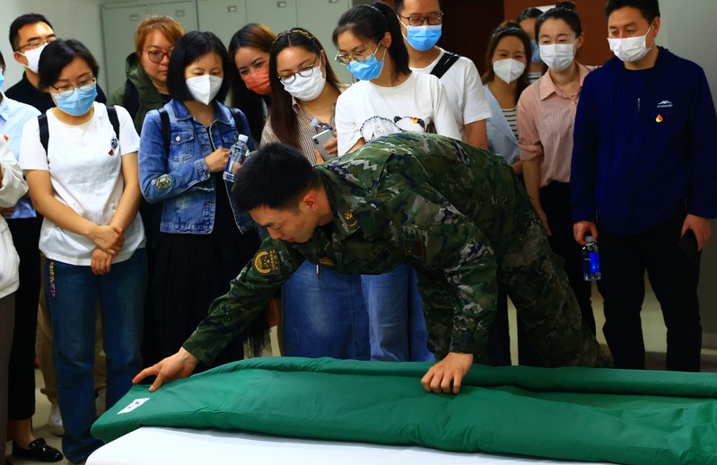 武警官兵熱情地接待了我校教師,并帶領大家參觀了他們的隊史館、榮譽室、學習室、官兵宿舍,還現(xiàn)場觀看了戰(zhàn)士整理內(nèi)務的展示。
