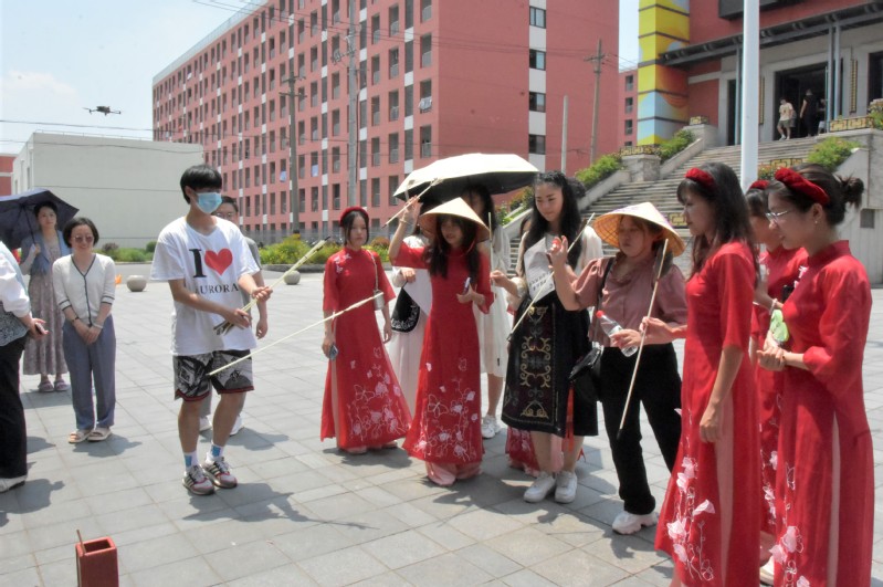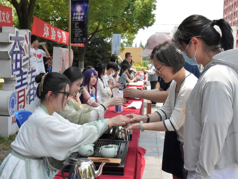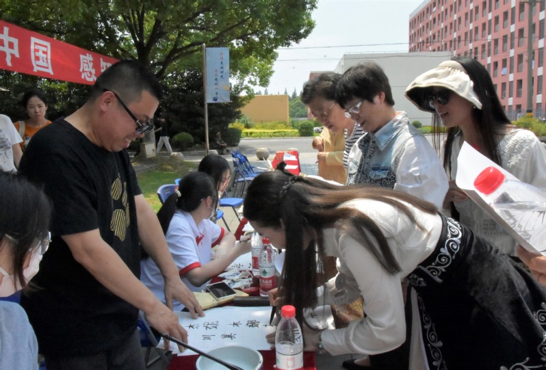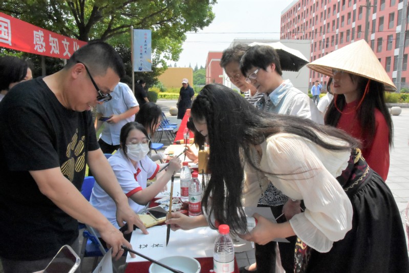 2023年6月9日中午,2023年長三角應(yīng)用型高?!爸袊适隆庇⒄Z大賽系列活動之留學(xué)生中國文化體驗(yàn)日活動在學(xué)校文英綜合樓前的廣場舉行。活動由上海震旦職業(yè)學(xué)院跨文化課程思政教學(xué)與研究中心、國際交流處主辦,上海震旦職業(yè)學(xué)院團(tuán)委學(xué)生會、學(xué)生社團(tuán)協(xié)辦。
