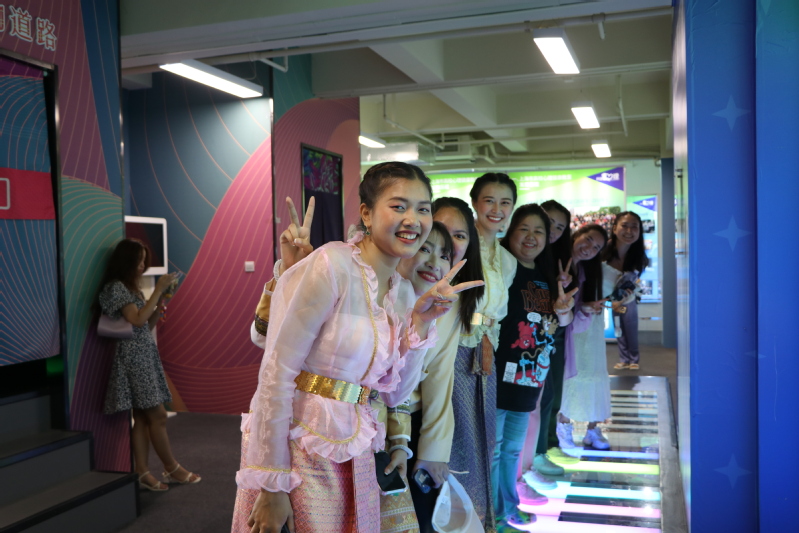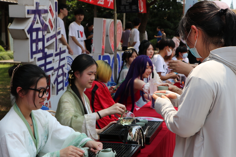活動期間,上海震旦職業(yè)學(xué)院學(xué)生社團(tuán)在活動區(qū)域設(shè)置了中國傳統(tǒng)文化展臺,供來訪的留學(xué)生團(tuán)隊進(jìn)行體驗(yàn)。這些展臺包括吉他社、漢字書法、投壺、中國剪紙、漢服社、動漫社等,留學(xué)生們對此興趣濃厚,紛紛參與到茶藝表演、中國剪紙藝術(shù)、投壺互動中,還有的跟著東方文化學(xué)院米法利老師練習(xí)了漢字書法。