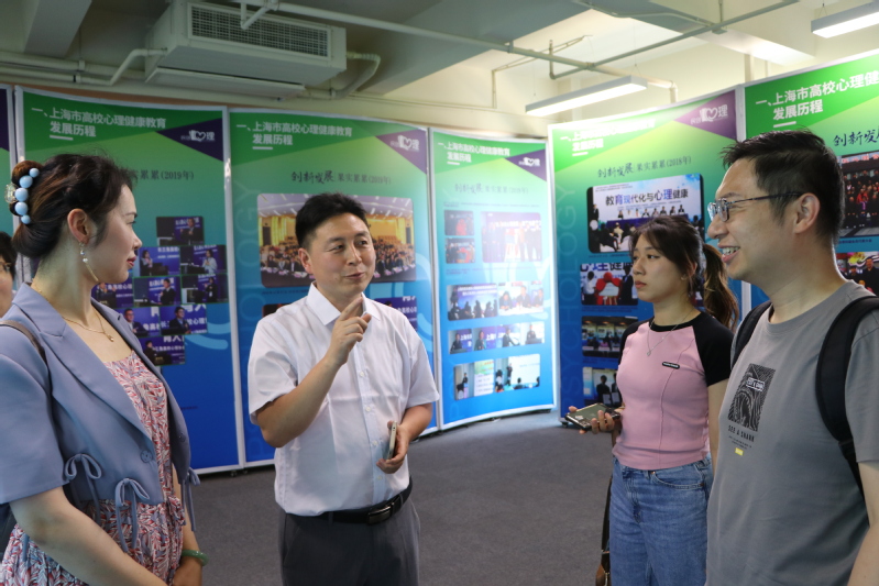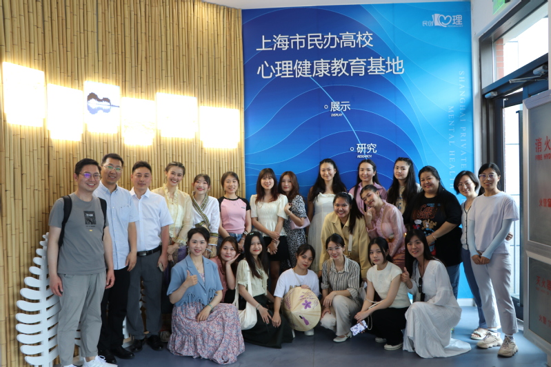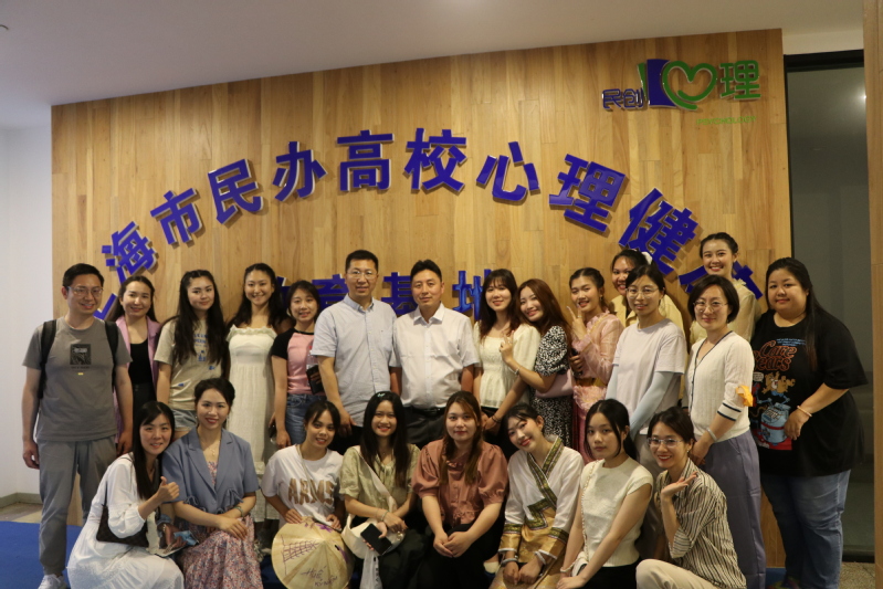 最后,參加本次活動的師生們一起走進(jìn)上海市民辦高校心理實(shí)踐基地進(jìn)行了參觀。在黨辦主任張軍勝的帶領(lǐng)和解說下,留學(xué)生們了解了民創(chuàng)心理健康教育協(xié)會的發(fā)展歷程,然后進(jìn)入星空館、勇敢者游戲、彩色鋼琴鍵、邁克房、按摩屋等活動室進(jìn)行了互動體驗(yàn),繼而欣賞了以中西文化元素“兩儀樹”和“曼陀羅樹”為代表的審美藝術(shù)心理場地及部分學(xué)生作品。