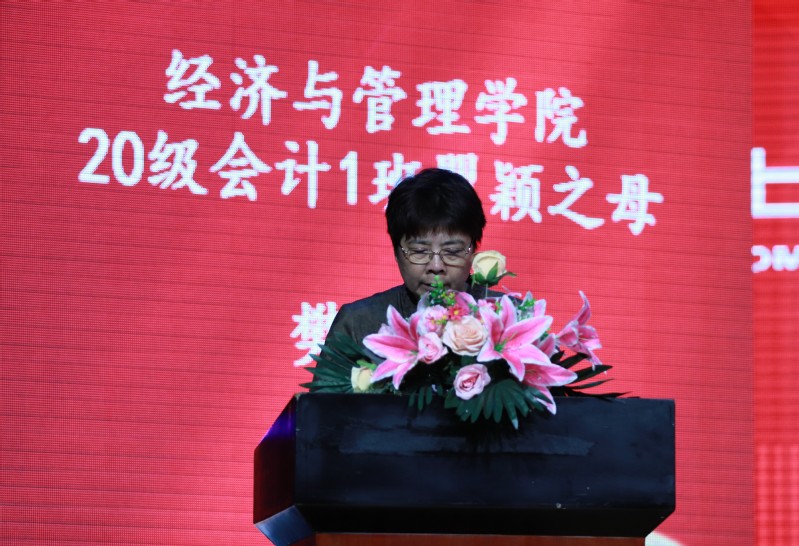 20會計1班畢業(yè)生瞿穎的母親樊靜文女士作為畢業(yè)生家長代表發(fā)言。她向與會領(lǐng)導(dǎo)、老師和同學(xué)們表達(dá)了誠摯的問候與感謝,希望畢業(yè)生們在人生的道路上繼續(xù)前行,成為有擔(dān)當(dāng)、有情懷的社會棟梁之才。