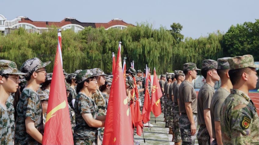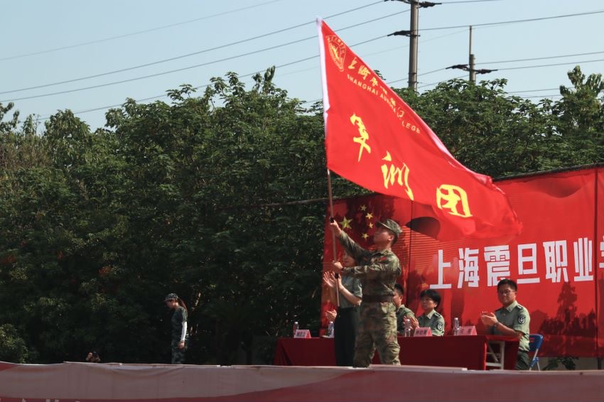 鐘劼菁處長為本次軍訓(xùn)授軍訓(xùn)團(tuán)團(tuán)旗。一旗授,一營成。少年不懼歲月長,青春意氣凌九霄,未曾拼盡全力,何談肆意揮灑青春。