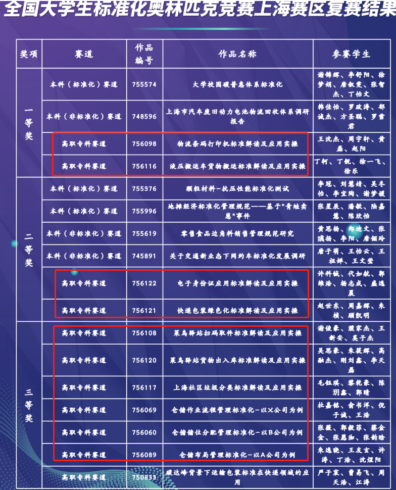 2023年全國大學(xué)生標(biāo)準(zhǔn)化奧林匹克競賽(上海賽區(qū)競賽)在9月落下帷幕,我校經(jīng)濟(jì)管理學(xué)院2021級現(xiàn)代物流管理專業(yè)學(xué)子喜獲2個一等獎,2個二等獎,6個三等獎。指導(dǎo)老師胡璇獲“優(yōu)秀指導(dǎo)教師”稱號。