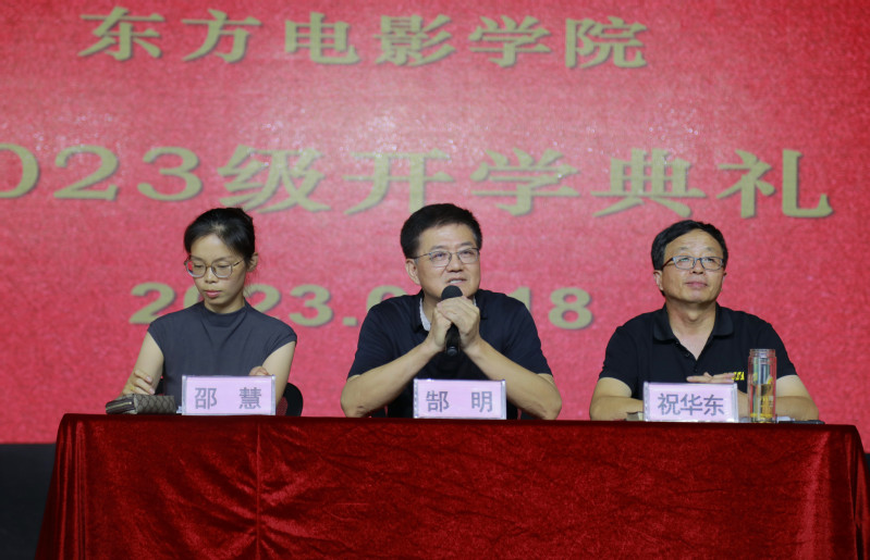 副院長、黨總支書記祝華東發(fā)言,他首先向2023級新生介紹了東方電影學院發(fā)展、專業(yè)建設、教學改革、產(chǎn)學結合情況以及近年來學院師生所取得的成就。祝院長送給2023級新同學三個關鍵詞:目標、擔當、技能。他要求新同學們在開啟大學生活之際,進行職業(yè)規(guī)劃,確立人生目標,三年中怎么做,三年后做什么,在這一過程中咬定目標、擔當作為、刻苦努力、練好技能,迎接挑戰(zhàn)。這樣,大學生活會很充實,內(nèi)在收獲會很豐碩,人生旅途會有光彩。