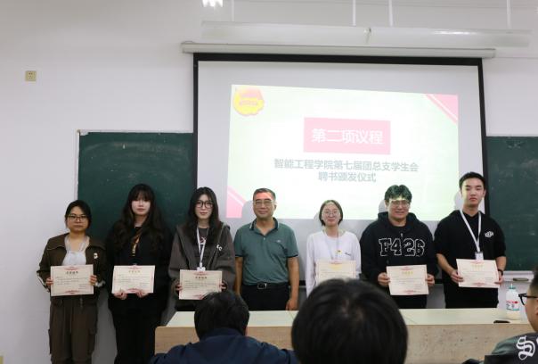 與會老師為學生干部頒發(fā)了智能工程學院第七屆團總支學生會學生干部聘書,感謝學生干部們過去一年的辛勤付出,鼓勵新一屆學生干部繼往開來,將團學推上一個更高的臺階。
