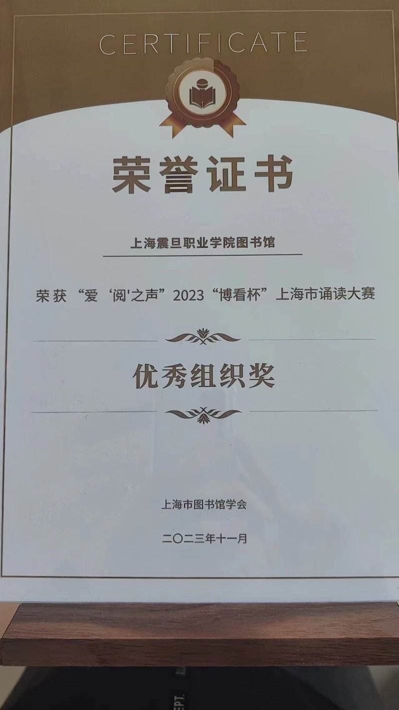 為進一步推進上海市文化建設(shè),鼓勵廣大市民讀者和在校大學(xué)生多讀書、讀好書、勤思考,從讀書中汲取力量與智慧,提高自身文化素質(zhì),形成人人讀好書、人人好讀書的終身學(xué)習(xí)目標,由上海市圖書館學(xué)會閱讀推廣委員會主辦,上海市圖書館學(xué)會新媒體閱讀推廣委員會、博看網(wǎng)共同承辦,上海市各參賽高校圖書館及公共圖書館共同參辦的“愛‘閱’之聲”2023“博看杯”上海市誦讀大賽落下帷幕。我校圖書館榮獲優(yōu)秀組織獎,圖書館劉圣德老師獲得“優(yōu)秀領(lǐng)隊”稱號。