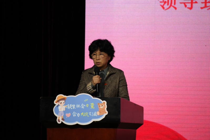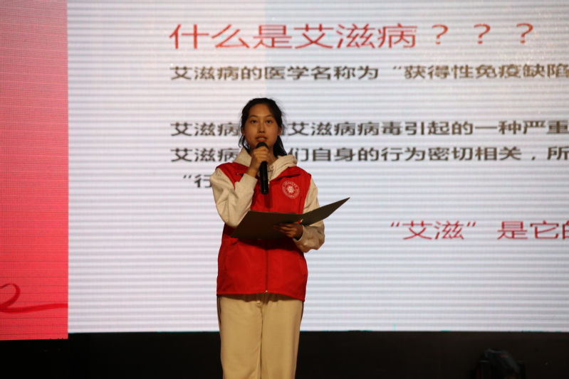 在下午的主題宣傳活動中,副校長王純玉致辭。她對我校多年來在防艾工作上取得的成績給予了充分的肯定,呼吁大家關(guān)注艾滋病防控問題,消除對艾滋病病毒感染者和患者的歧視和偏見,建立和諧關(guān)愛的社會。我校滿天星青春健康同伴社率先發(fā)起倡議,宣讀“共享健康?為愛防艾”倡議書,星火志愿者共同宣誓,號召同學(xué)們提高防控艾滋病的意識以及自我防護(hù)能力,營造良好的防艾教育宣傳氛圍。