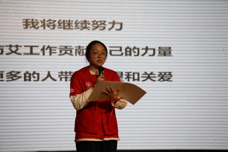 隨后,領(lǐng)導(dǎo)老師們?yōu)?/span>“為愛防艾·一路同行”短視頻征集大賽和主題海報征集大賽獲獎的同學(xué)頒獎。青春健康骨干潘芷茜、陳曦、鄧佳月分享了她們與防艾的故事,引導(dǎo)同學(xué)們關(guān)注生活,展示自我,營造出濃厚的校園青春健康宣傳氛圍。