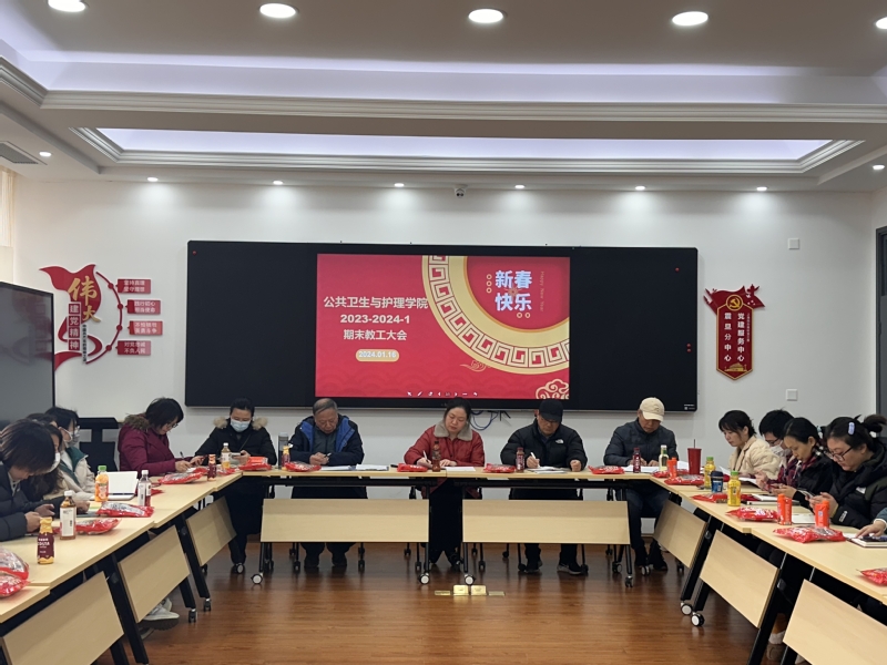 2024年1月16日上午,公共衛(wèi)生與護理學院召開期末教職工大會,總結2023年度學院的教學、科研等重點工作,謀劃2024年度學院的發(fā)展規(guī)劃,并布置2024年度工作重難點以及其他相關事項。學院院長胡守忠、副院長胡鵬飛、任課老師和輔導員等參加了會議。會議由學院黨總支書記王璐主持。