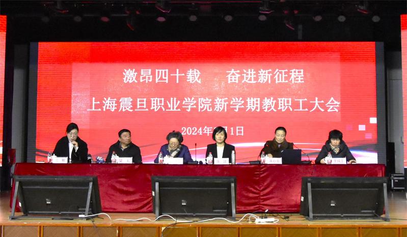 2024年3月1日上午,上海震旦職業(yè)學(xué)院在校大禮堂召開(kāi)“激昂四十載 奮進(jìn)新征程”新學(xué)期教職工大會(huì)。震旦教育集團(tuán)創(chuàng)始人、震旦教育發(fā)展基金會(huì)理事長(zhǎng)張惠莉,震旦教育集團(tuán)董事長(zhǎng)張沈,黨委書(shū)記吳松,校長(zhǎng)蔣心亞,副校長(zhǎng)王純玉等領(lǐng)導(dǎo)出席大會(huì),上海震旦職業(yè)學(xué)院全體教職工參加會(huì)議。大會(huì)由組織部部長(zhǎng)黃敏主持。